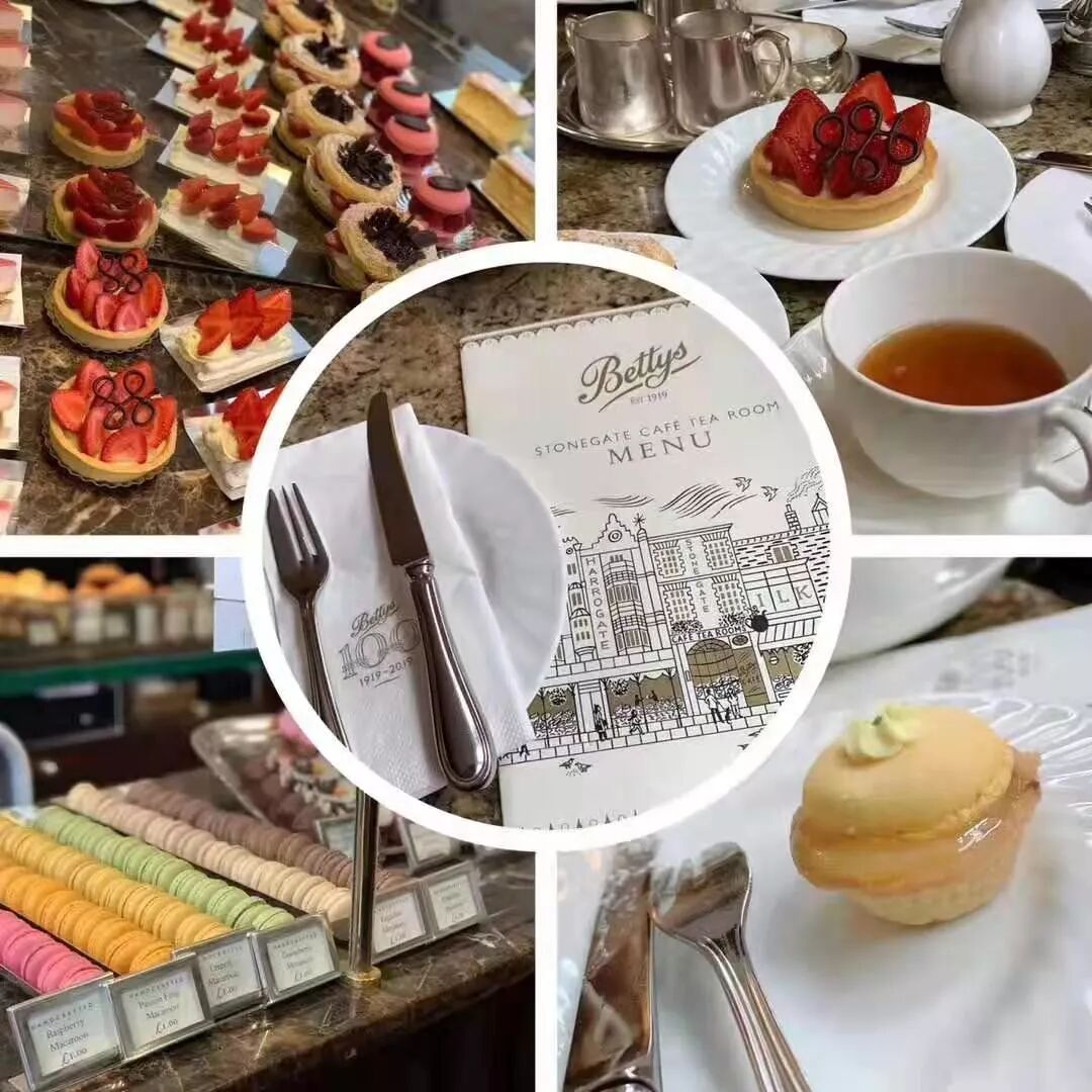 在约克,有众多餐馆供应传统英国佳肴和美国菜式,还有咖啡馆式的简餐店。最具地方特色的约克郡布丁不容错过,除下午茶时间,可享用茶点和蛋糕。我们在贝蒂茶屋(Betty's Tea Room)享受一餐具有闲适气息的英国式下午茶,伴着悠扬的现场钢琴演奏,沉浸在浓郁茶香和蛋糕气息中,舒适惬意。