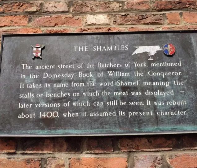 谢姆伯(Shambles)是一条保存完好无损的中世纪街道,一条石砌小路,曲折细长。原来路边的一些房屋是肉铺,现为出售美术品和礼品的商店,在这里可以买到约克大教堂的飘雪玻璃球。Shambles附近有一个露天市场,出售各种水果和食物。