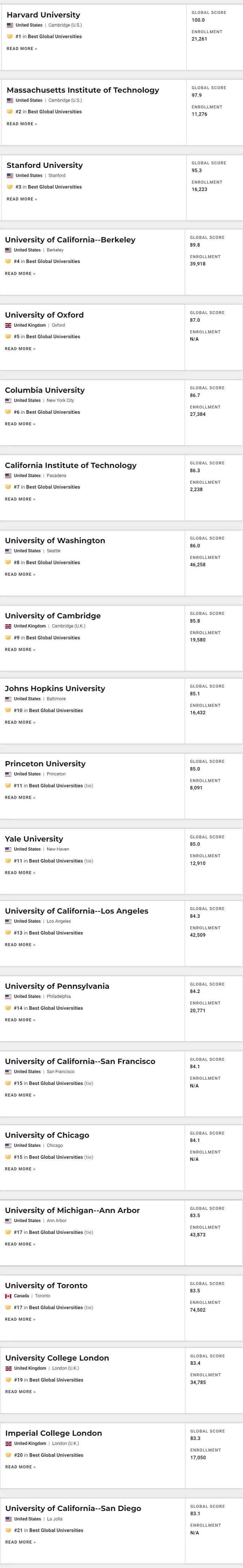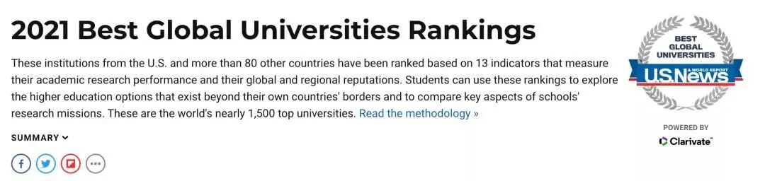 2021USNews版世界大学排名火热出炉了!