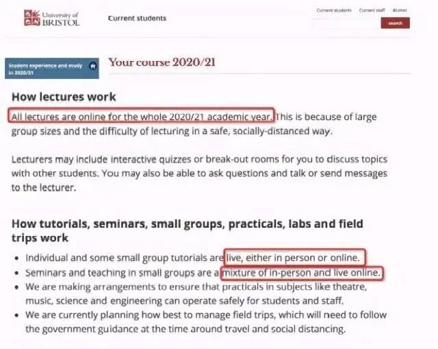 如果有学生无法抵达英国,想上全网课,可以填写在线表格,向学校提交申请:https://www.bristol.ac.uk/students/your-studies/study-2020/your-course/location-of-study/