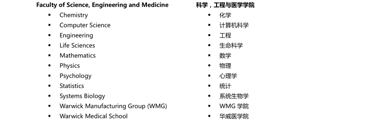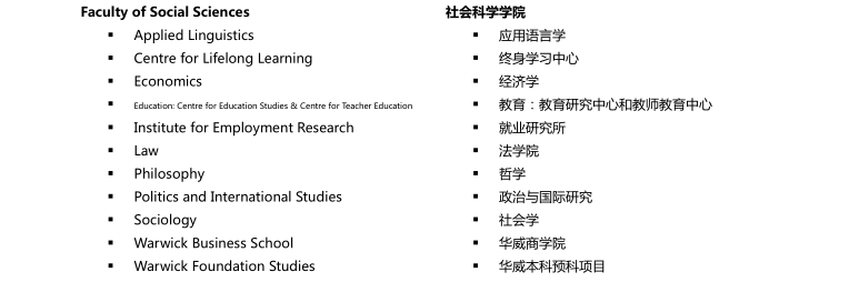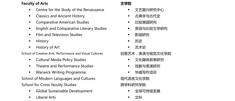创意和媒体企业 MA in Creative and Media Enterprises 这是英国第一个研究创意业务的项目。鼓励学生发现一种创新的具有创意性的管理方法,然后将其应用于各种场景和行业。通过与行业专家和实践项目的接触,学生将获得关于行业实践和辩论的第一手知识,在这些项目中学生将发展战略思维,研究领导力和团队合作技能。 国际文化政策与管理 MA in International Cultural Policy and Management 本课程针对文化在各种政策环境中日益增长的重要性,为学生准备迎接文化部门职业生涯的多元化管理挑战。以国际层面的文化政策和管理为出发点,该方案借鉴世界各地的经验和实例,并为学生提供预测未来发展所需的技能。 会计与金融 Accounting and Finance 生物化学 Biochemistry 生命科学提供各种以生物学为重点的学位课程。新技术的进步,包括基因组学和整合生物学,使这一学科不断发展。我们教授和研究从分子到整个动物再到整个环境的生命过程,以了解生物学和医学必不可少的细胞,分子和生理相互作用。 化学 Chemistry 化学对于解决人类面临的一些最紧迫的问题至关重要,包括气候变化,可再生能源以及消除饥饿和疾病。课程开发出的分析,数字和逻辑推理能力意味着毕业生在整个就业领域都需求旺盛。 经济学 Economics 经济学是对选择的研究,主要研究消费者和公司,团体和政府,网络和国家的选择。它使用科学方法来开发行为的理论模型并通过对市场,机构和公共政策的实证分析来检验直觉,从而在现代生活的各个方面发挥作用。该系的教学以研究为导向,这意味着您将向英国一些最著名的学者学习。 心理学 Psychology 心理学是对人类行为和心理生活的科学研究——人们为什么要以自己的方式思考,感受和行动。心理学(BSc)学位对人类行为的各个方面以及构成这种理解的研究方法提供了科学的理解。华威的会计和金融专业资格证书,提供技能,知识和信心,可以在快节奏的跨国公司和全球金融市场中有效运作。可以免除许多专业的会计考试。