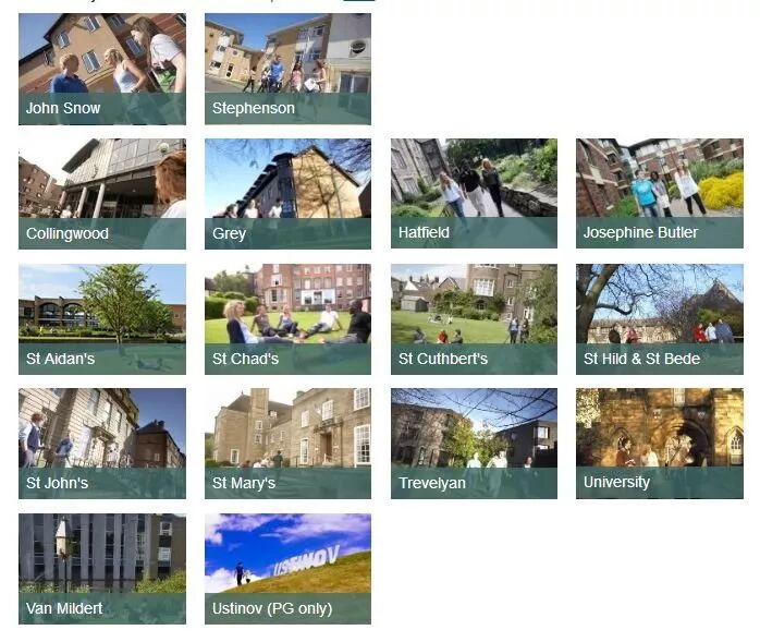 杜伦大学共设有16个学院,学院是寄宿制学院,为学生参加社会与学术活动提供了极佳的场所。