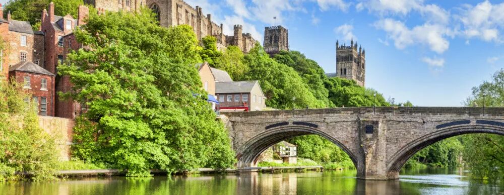杜伦最知名、最瞩目的景点当属杜伦大教堂和城堡。杜伦大教堂始建于1093年到1130年间,是英国最具特色和典型色彩的诺曼底式教堂,是“英国十大教堂”之一,亦是哈利波特系列电影的取景地之一,更被世人称赞为英国最美的教堂之一。教堂高大雄伟,窗高壁厚、柱粗拱圆,西面屹立着两座对称的四方高塔,在其正后方的中间位置又耸起一座,整体造型既雄浑又壮观。杜伦大学的开学、毕业典礼也是在这里举行。