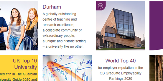 杜伦大学是一所很独特的大学:一个融合了大学古老传统与现代价值的大学。学校力求最高的学术声誉及研究成果,真正改变社会、世界。同样致力于卓越的教学,教育和知识的传播。