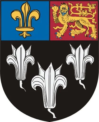 (伊顿校徽:它的校徽是由右上角代表英格兰王室的狮子纹章和左上角代表法兰西王室的百合花徽章以及下方三枚衬着黑底的银色百合组成。使用两个王室的标志只因当时建校者亨利六世同为英法两国的国王;而黑底代表永恒,银百合代表圣母玛利亚。)