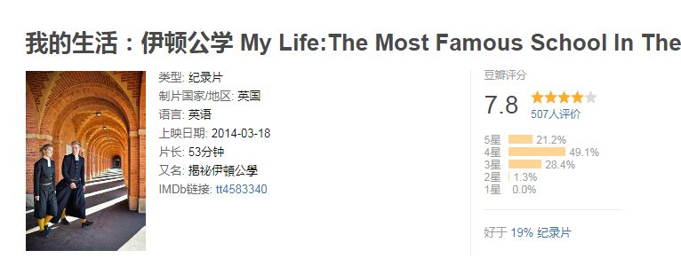 最后,大家感兴趣的话,也可以看一看BBC的纪录片,更直观的了解伊顿的面貌。这部纪录片于2014年3月18日上映,豆瓣评分7.8分,是BBC在2013年拍摄。
