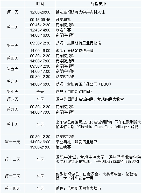 申请流程:填写项目申请表→确认个人信息→签订合同并缴费→收到曼大商学院邀请信。