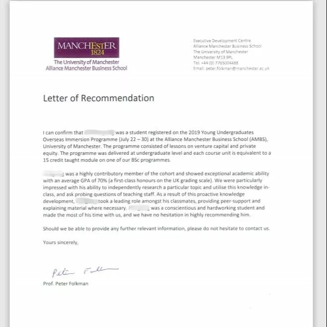 申请流程: 填写项目申请表→确认个人信息→签订合同并缴费→收到曼大商学院邀请信。