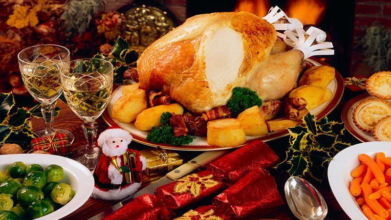 估算数字:每年圣诞节英国要吃掉1000万只火鸡。另外还有各种各样的配菜,搭配着不同的配菜,喝着圣诞特饮,吃完了再来点儿甜品,丰富并且美滋滋~