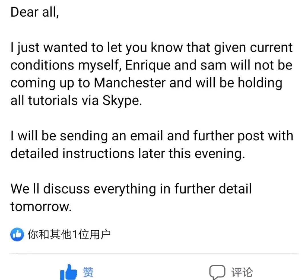又比如,曼彻斯特大学的老师也给学生发了邮件。