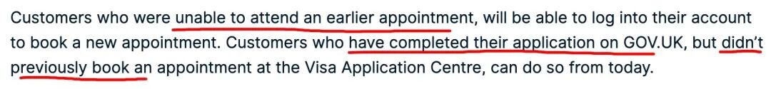 官网还显示:之前预约但未完成的客户可以登录其账户重新预约;已经在移民局官网上完成申请但没在签证中心预约的客户,也可以从今天开始预约了。