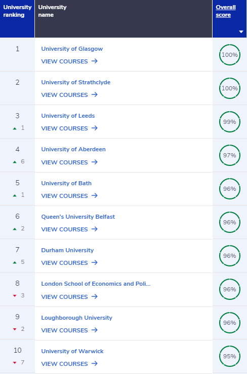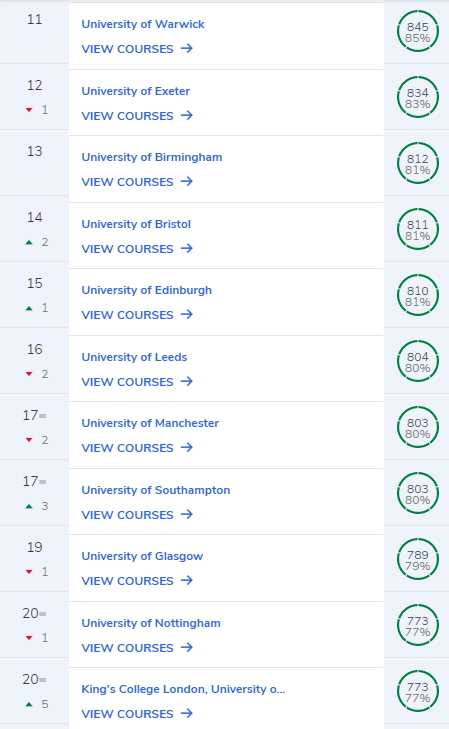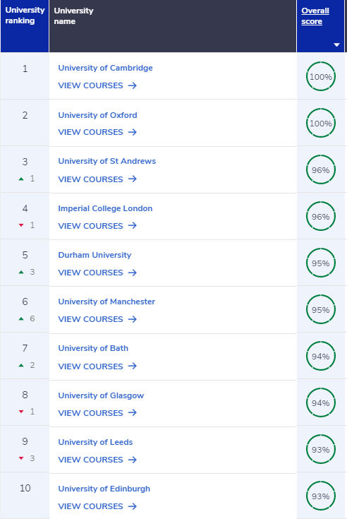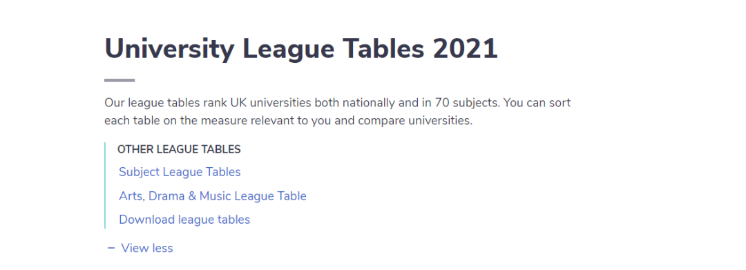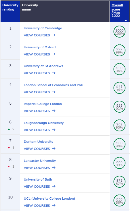 Complete University Guide是由英国报社《独立报》参与制订,该排名的所有数据,都来源于英国高等教育统计署, 包括: