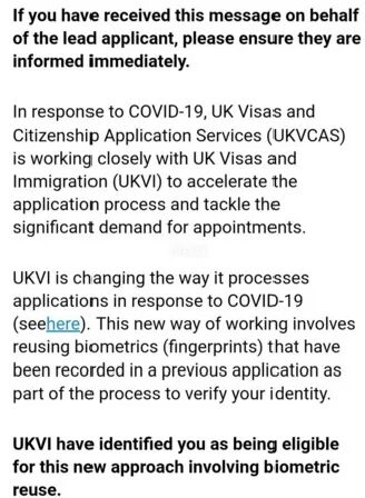 最近很多在英国境内申请续签的小伙伴都收到了这样一封来自UKVCAS的邮件☟