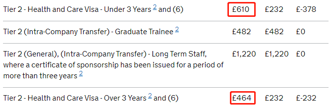 另外,如果申请人的是短缺工种里的医护岗位(Shortage Occupation - Health and Care),签证申请费用也有同等程度的“折扣”:3年内签证232英镑,3年以上464英镑。