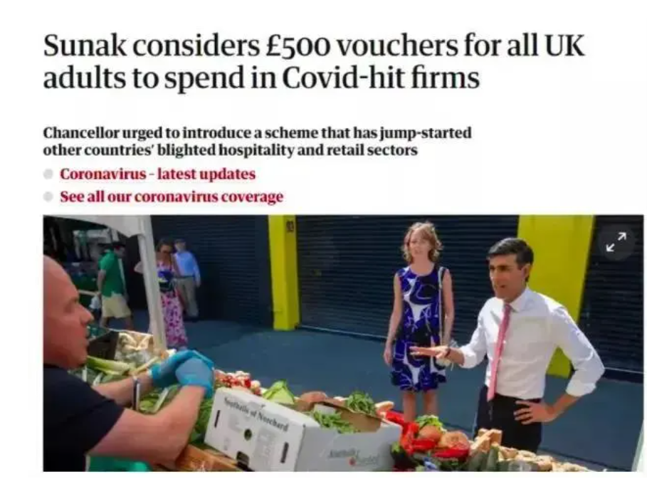 包括向成年人发放500英镑,向儿童发放250英镑的消费券,以刺激消费,从而帮到那些受疫情影响最严重的行业。