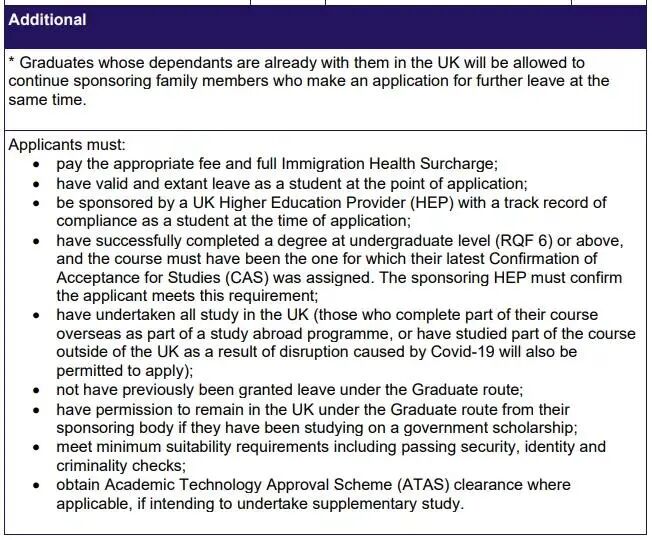 ⑩ 已经在英国的陪读亲属可以在毕业签证期间继续陪同他们,离开时间与主签证者相同。在此期间,随行亲属可以在英国从事几乎所有类型的工作。(这一条是在今天细则中首次确认的)