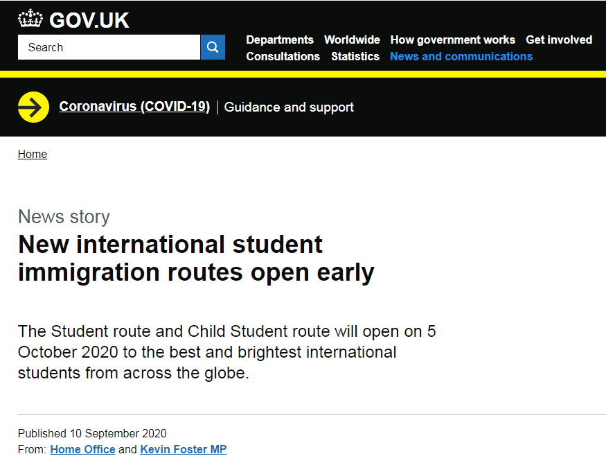 ③ 提前开放的新学生签证包括学生签证(Student Route)和儿童学生签证(Child Student Route)。